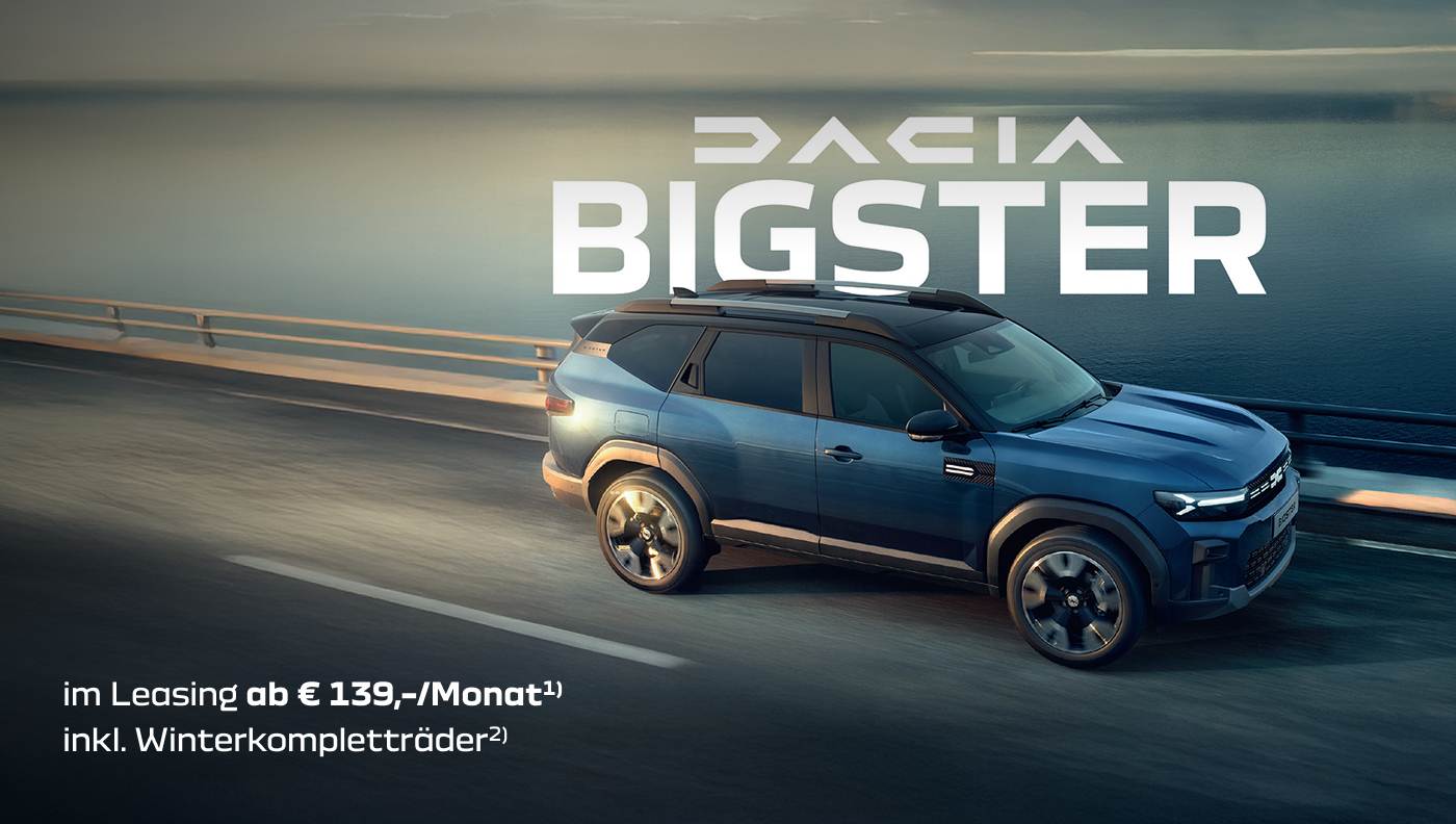 Gesamtverbrauch Dacia Bigster von 6,1–4,6 l/100 km, CO2-Emission 139–105 g/km, homologiert gemäß WLTP.